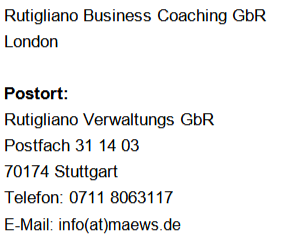 Der Nutzung von im Rahmen der Impressumspflicht veröffentlichten Kontaktdaten zur Übersendung von nicht ausdrücklich angeforderter Werbung und Informationsmaterialien wird hiermit widersprochen. Die Betreiber der Seiten behalten sich ausdrücklich rechtliche Schritte im Falle der unverlangten Zusendung von Werbeinformationen, etwa durch Spam-E-Mails, vor.